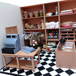 Fill the shop with shelves, diplay units, tables.