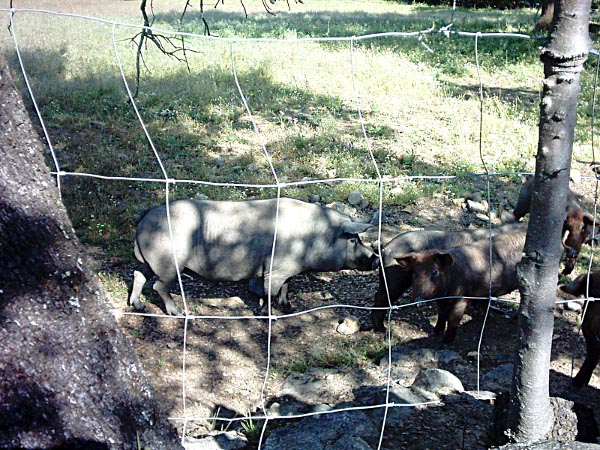 little black footed pigs (pata negra) fed on acorns from the cork